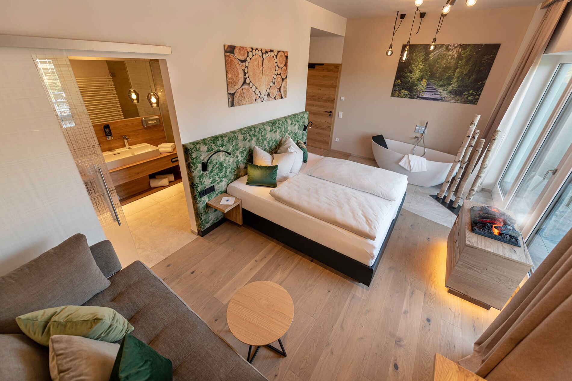 Dem Element Holz sind wir im Bayerischen Wald sehr verbunden und man sagt, es steht für Wachstum, Entwicklung, Flexibilität und Kreativität. Ihr habt genauso viele Möglichkeiten, Euer Urlaubsglück zu gestalten. Größeres Doppelzimmer mit gemütlichen Boxspringbett (1,8 x 2 m) und gemütlichem Sofa. Natürliche Farben und Materialien sorgen für eine behagliche Stimmung.