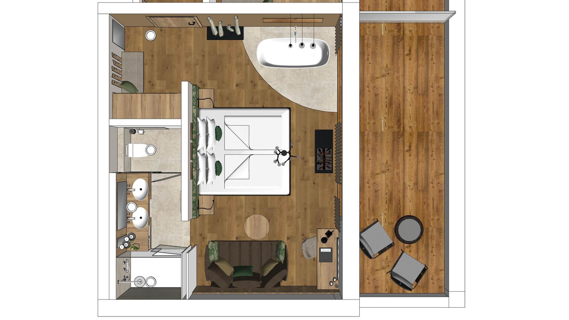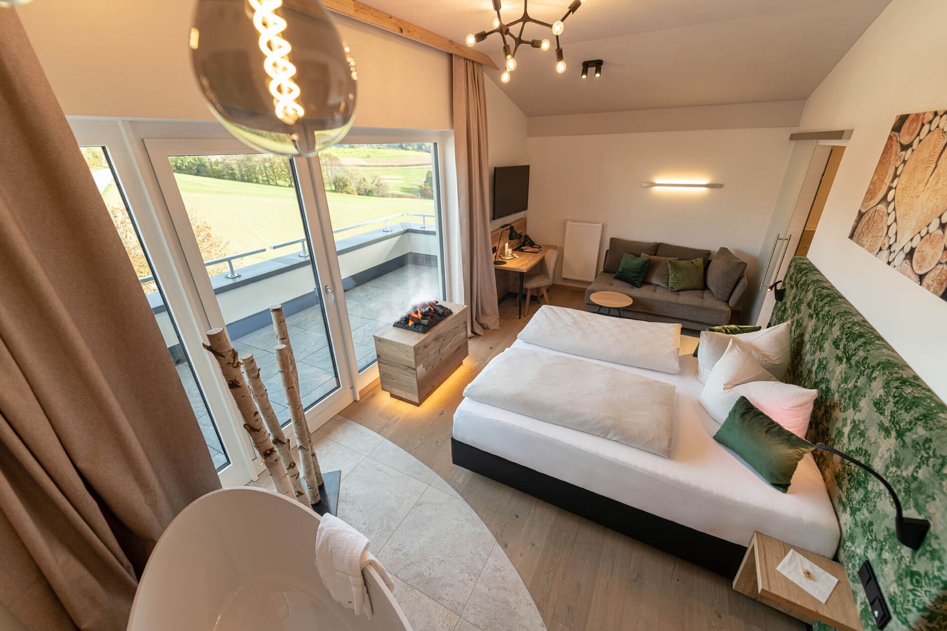 großer BalkonOstseite- von der Morgensonne geweckt werdenGanz oben mit herrlichem AusblickFreistehende Design-BadewanneKnisternder Elektro-KaminEchtholzfußboden aus dem österreichischen Kloster Admontgroßzügiges Wohlfühl-Badezimmer mit begehbarer Regenduscheabgetrenntes WCLage: III. Stock, OstseiteLetzte Renovierung: Neubau 10/2019Einziges Zimmer dieser Kategorie